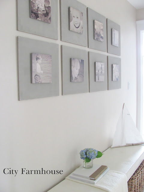 2. Gallery Wall: This is a very easy & fun tutorial on how to create a gallery wall for under $40. What you need to start MDF 8-8 x 8 squares 8-16 x 16 squares Check with your local hardware or wood supply store because some will actually cut the wood for you. Large Squares First What (via City Farmhouse)