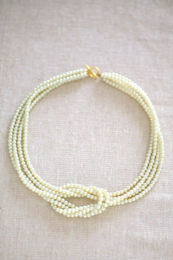 5. Pearl Bead Square Knot Necklace: Easy beading tutorial for a pretty multi-strand pearl bead necklace with a square knot at the center. (via Create / Enjoy)