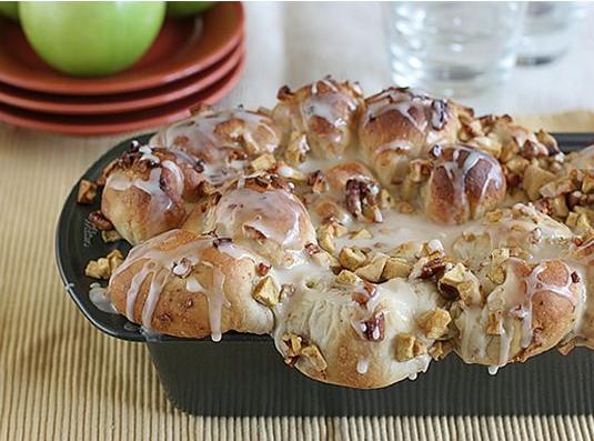 3. Apple Filled Pull-Apart Loaf: Enjoy the taste of fall with this amazing pull-apart loaf. Whether serving this for guests or sitting around the dinner table, it’s sure to not disappoint. Apples, cinnamon and an almond glaze? Who could resist? Deborah from Taste and Tell shows you how to put it all together. (via Rhodes Blog)