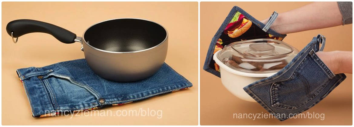 2. Denim Pocket Pot Holders and Mitts: Nancy Zieman’s guest blogger, Donna Fenske shares how to recycle front and back jeans pockets to create fun and functional Denim Pocket Pot Holders and Mitts. (via Nancy Zieman)