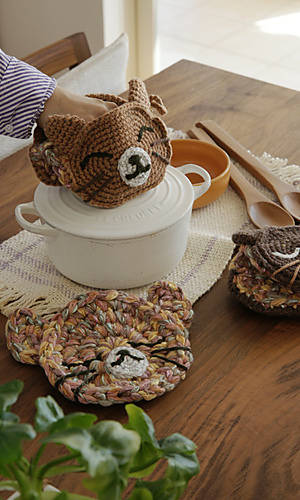 3. Animal Oven Mitt and Potholders: Japanese version available here. Both English and Japanese versions are fully charted using standard knitting and/or crochet symbols. (via Pierrot (Gosyo Co., Ltd))