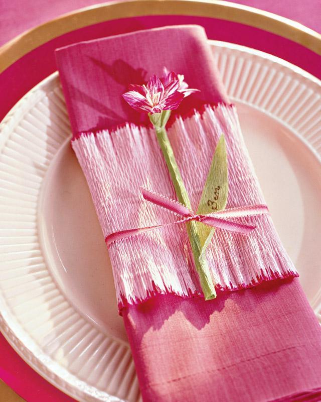 4. Crepe-Paper Amaryllis: Tie these faux flowers in with crepe-paper napkin rings to personalize each place setting. (via Martha Stewart)