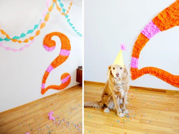 1. Streamer Backdrop: Inspired by Amy and Stephens DIY photobooth backdrop, we decided to try making one ourselves Its so easy! You can even give your own twist to this project by arranging the crepe paper strips in geometric patterns like herringbone. For this project all you need are streamers in different colors, glue, scissors or paper cutter (via Ruffled)