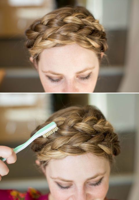 11 Texturize milkmaid braids with a teasing brush or toothbrush