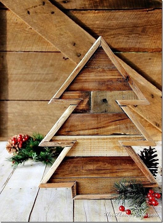 66. Pallet Wood Christmas Tree: Make an pallet wood Christmas tree. Step-by-step instructions for creating a pallet wood Christmas tree. Use pallet wood to create this diy project. (via Thistlewood Farm)