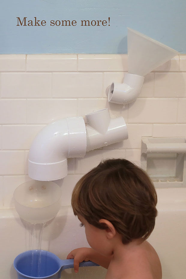 7. PVC Bath Toys: A wonderful bath toy idea from The Brooding Hen! Build Bath Toys using PVC Pipe, Suction Cups, and a Drill. My son always wants me to hold toys, or my hands, or anything for him to pour water over while in the tub. I cannot wait to grab some scrap pvc pipe and fittings from (via Ellis Benus)
