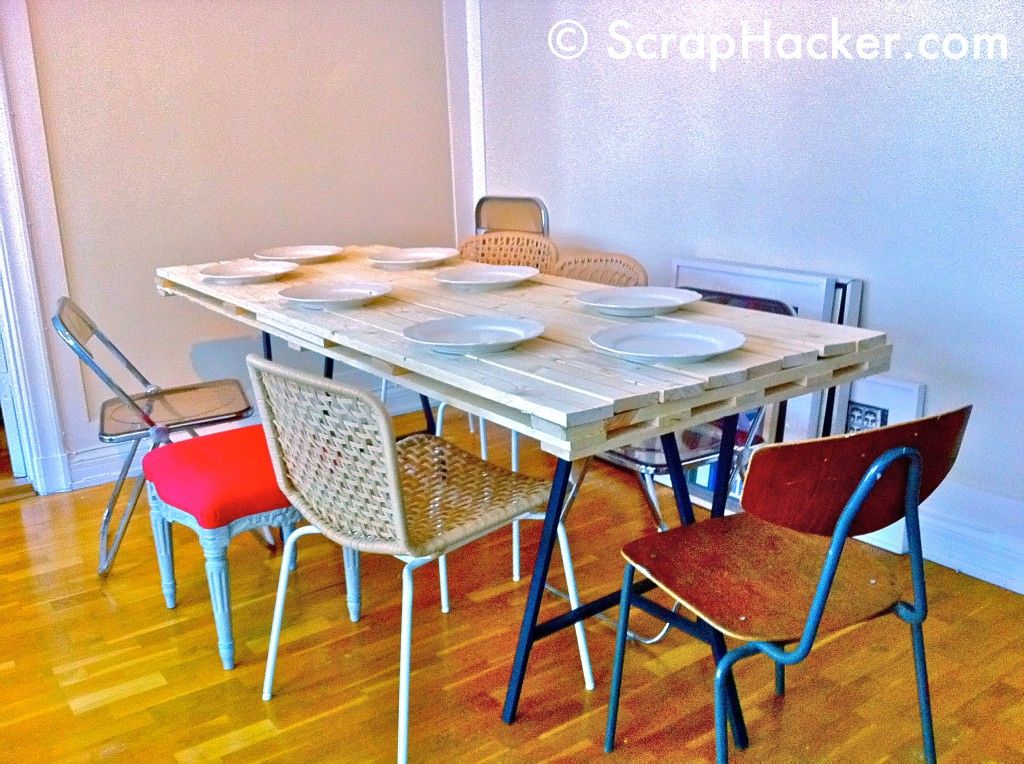 15. Pallet Dining Table: Follow ScrapHackers 10-step illustrated tutorial on how to make a great looking, cheap dining table out of large pallet and 5 IKEA VIKA Lerberg trestles. Give it a go – the result will be great and you’ll have loads of fun in the process! (via Scraphacker)