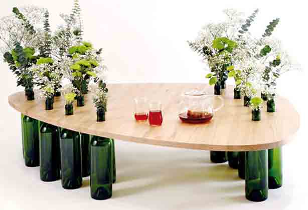 5. Wine Bottle Table: In part a celebration of the social aspects of wine, Brazilian designer Tati Guimares createdDvinus as an interactive user experience that forces one to contemplate reusing otherwise disposable objects for a sustainable design.Dvinus is a collection of Read More… (via Urban Gardens)