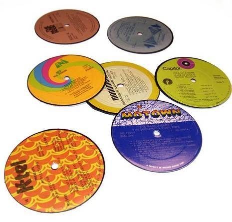 3. Vinyl LP Coaster: These are by no means an original idea. I saw them on all sorts of websites when shopping for unique Christmas gifts. However, $20-45 for six or eight coasters seems like a bit much. For the same investment [for the hole saw], you can make these guys by the thousands, and by picking out your own LPs, you can select from the choicest of colors and label designs.And while you’re feeling LP-tastic, check this out!Supplies:12 vinyl albums (raid the 25 bin!)Electric drill or drill press Bi-Metal Hole Saw (I already had a 4 1/4 saw, but if you’re buying new, go… (via Curbly)