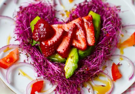 11. Pink Heart Strawberry Avocado Salad: Avocado Strawberry Micro Greens Salad (via Healthy. Happy. Life)