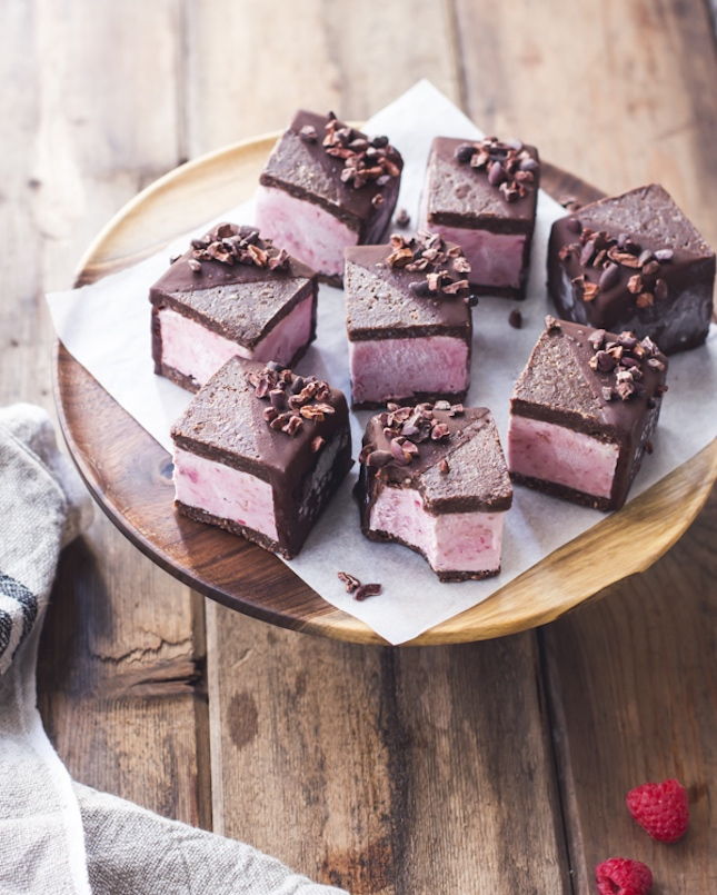 20. Raspberry Brownie Ice Cream Sandwiches: You won’t believe these heavenly ice cream sandwiches are also ridiculously healthy. Raw vegan brownies sandwich dairy-free raspberry ice cream, all dipped into raw chocolate and topped with cacao nibs. (via Bojon Gourmet)