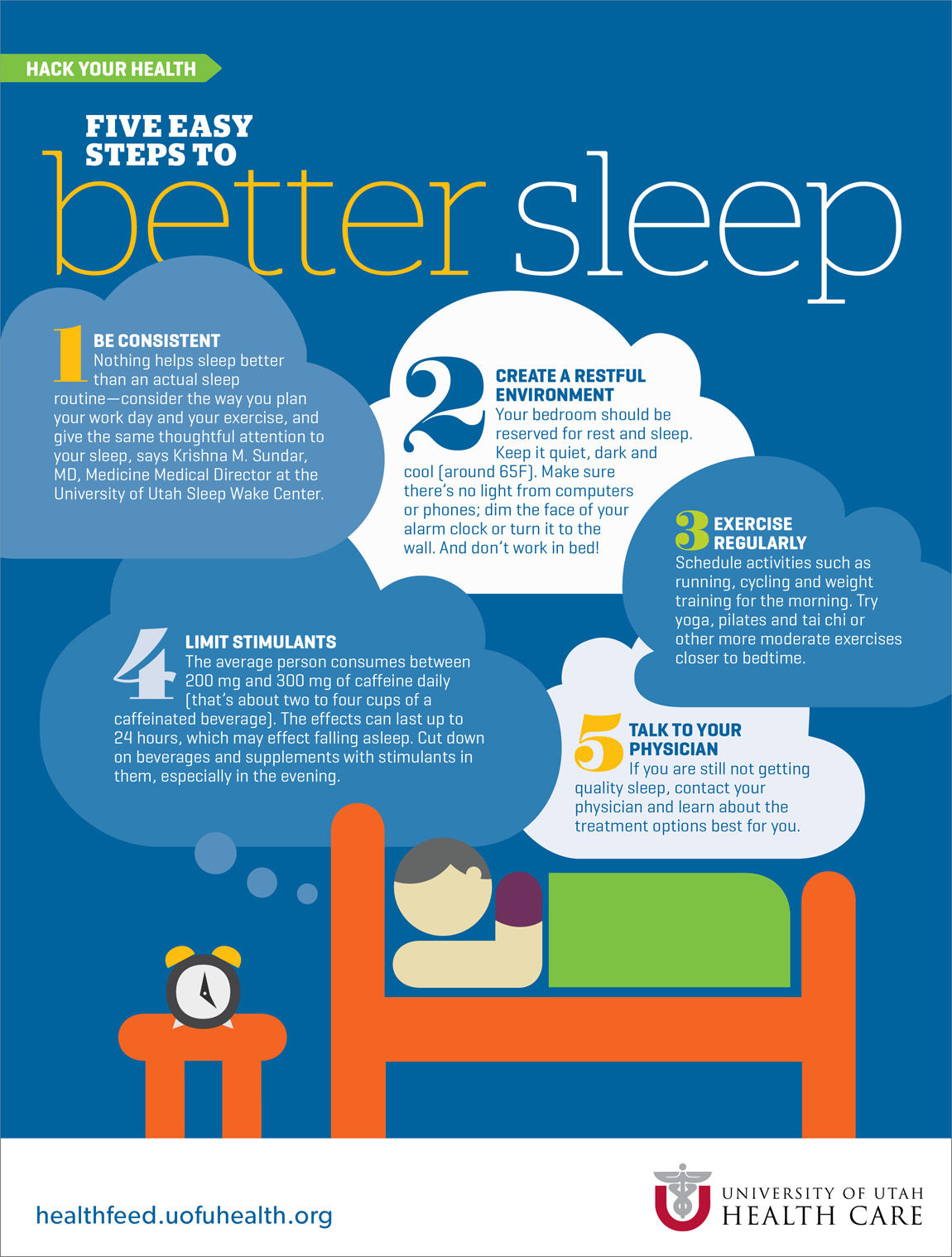 19. 5 Steps to Better Sleep (via University of Utah Health Care)