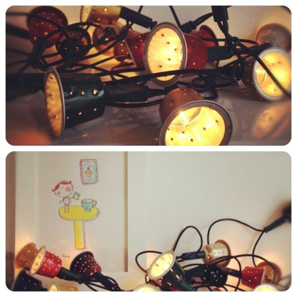11. Nespresso Caps Garland: This is not a secret, Nespresso is an opening of all the senses ! Relish a cup of coffee to bewitching fragrances: that’s a real pleasure. These pretty gold capsules is the accumulation of an additional waste. Some people are conscientious and brings their used capsules back and other people throw i (via RecyclArt)