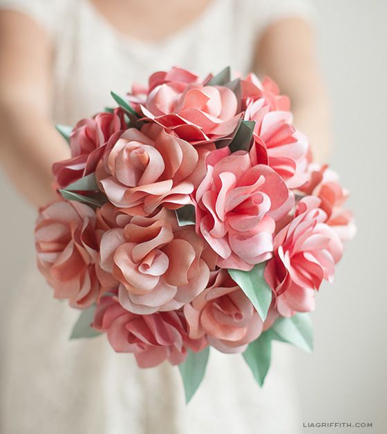 10. Paper Rose Wedding Bouquet: Create this gorgeous hand made paper rose bouquet for your elegant event or for a gift. (via Lia Griffith)