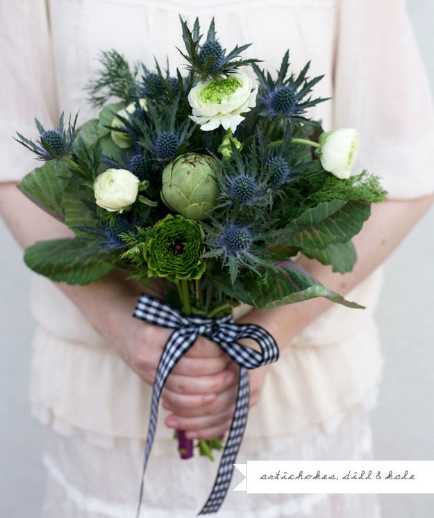 20. Edible Bouquet: I think this is such a fun idea for the foodie bride or bride who loves to cook why not incorporate some of your favorite veggies into your bouquet? Such a cool way to make your bouquet totally one-of-a-kind and YOU. We’ve put together a few bouquets to help inspire you and I hope [] (via Green Wedding Shoes)