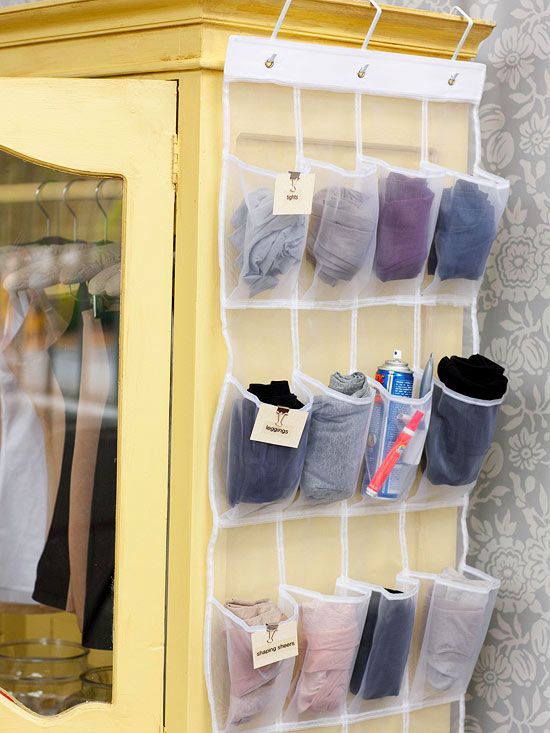 15. Clothespins for Organizing Tights: I was cleaning out my closet and was very irritated by the fact that my tights didnt fit anywhere in the closet. I keep my socks, underwear and stockings in separate boxes in my closet, but my tights just kept piling out of the box. And then I remembered all those tutorials on how (via Lana Red Studio)