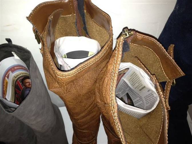 2. Use Rolled Up Newspaper to Prevent Tall Boots from Falling Over (via Cinsarah)