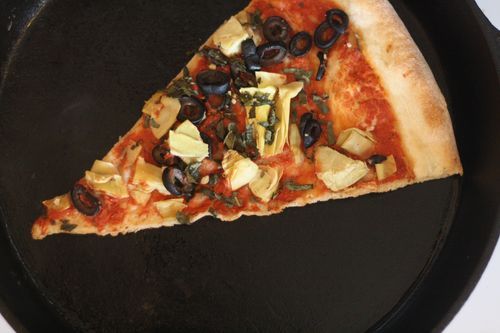 5. Tip: Reheating Leftover Pizza: Stove Top. Medium Heat. Heavy skillet. About a minute, or until it starts to smell like a pizzeria in your kitchen. The crust will crisp and the toppings will heat as long as you’re not working with too thick of… (via Your Vegan Mom)