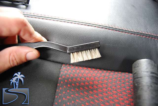6 Use the finer bristle Cobra Brush (like a toothbrush) to whisk dust and dirt from folds in the seats