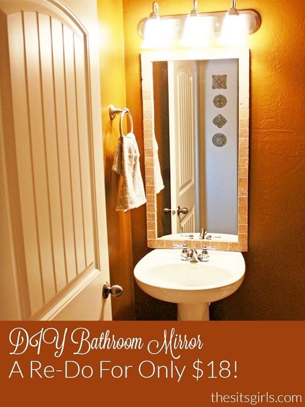13. Re-Do Bathroom Mirror: Redo your bathroom mirror with this diy bathroom mirror project. It is quick, easy, beautiful, and, for only $18, couldn’t be cheaper! (via The Sits Girls)