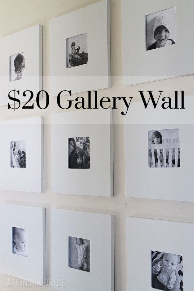 14. Black and White Gallery Wall: I made this 9-frame black and white gallery wall for less than $20 using mirrors and mod podge. Keep reading to learn how you can make one, too! (via Atkinson Drive)