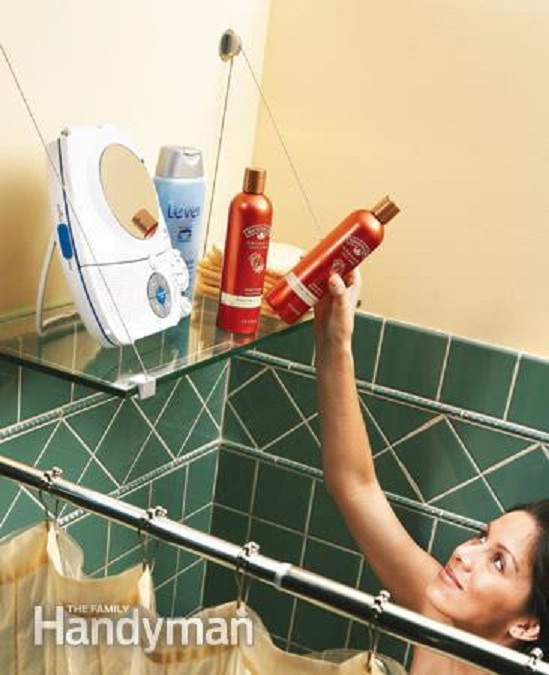 12. Glass Shower Shelf: Who doesn’t need more storage space in their bathroom? These clever tips will help you take advantage of every square inch so you can keep all of your bathroom supplies tidy, well organized, and close at hand. (via Family Handyman)