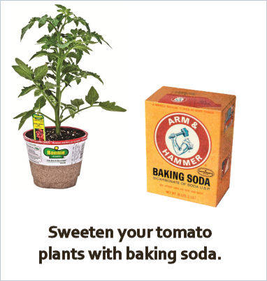 29. Use Baking Soda to Get Sweet Tomatoes: Use Baking Soda to Get Sweet Tomatoes Home grown tomatoes are nothing at all like those that you buy in the stores. Even the vine ripened ones cant compare in taste to the sweetness of those you grow yourself. Here is a neat tip to get the most sweet tomatoes each year. Put normal baking (via The Gardening Cook)