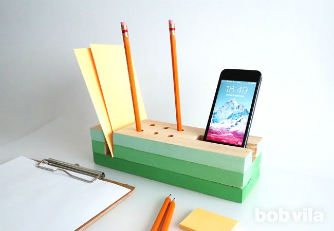 21. Trendy Easy-to-Build Desk Organizer: Keep pen, paper, and phone always accessible using a bright desk organizer. DIY it this weekend, and you’ll be excited for work on Monday! (via Bob Vila)