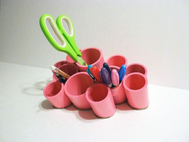 26. Super-Simple PVC Desk Organizer: Make Desk Organizing Cups with PVC Here is a super-cute storage idea that can be made for very little money Though $24.95 for the original isn’t bad, it only comes in three colors. For (via Designs by Studio C)