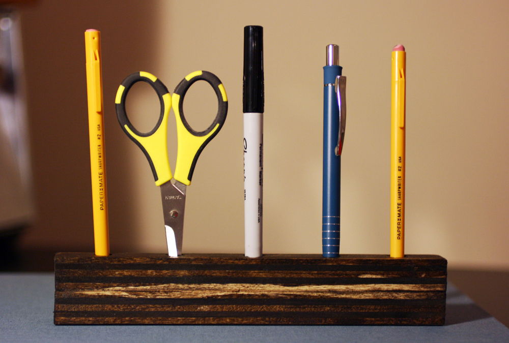 30. Wooden Pencil Holder: Remember that Anthro book case I posted about last week? When I was making it, I had some leftover wood slivers. So I decided to make a pencil holder with them. I took two 1-inch pieces, stacked th… (via whollyKao)