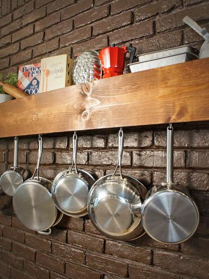 4. Kitchen Storage Shelf and Pot Rack: The kitchen decorating experts at HGTV share step-by-step instructions for building a space-saving shelf that allows you to store pots, pans and cookbooks all in one handy spot. (via HGTV)