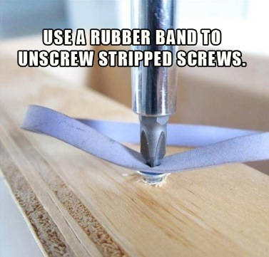 26. Rubber Band to Unscrew Stripped Screws (via Pinterest)