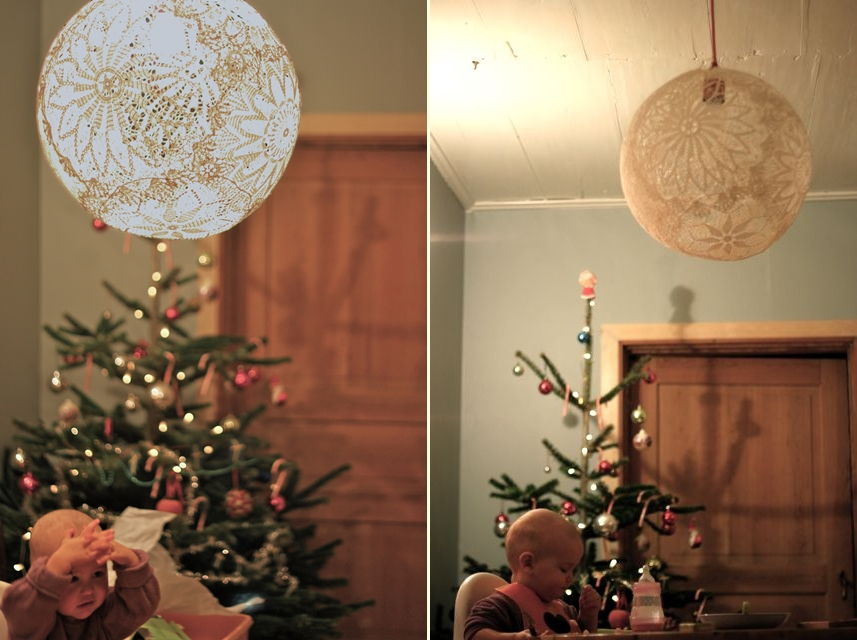 15. Doily Lamp: How to make a lamp out of old doilies / lace (via Dos Family)