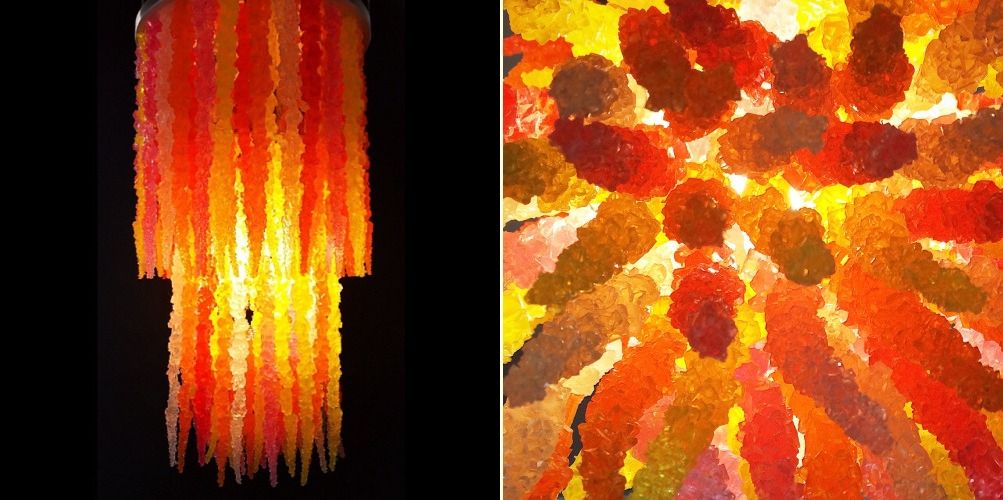 12. Rock Candy Chandelier: Say hello to the new custom built rock candy Chandelier.Kevin Champeny for Jellio. The Candy Chandy31″ long x 18″ diameter140+ hand cast resin rock candy pieces (via Kevin Champeny)