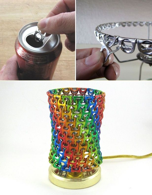 17. Pop Top Lampshade: Update: Lots of folks have been asking about the fancy rainbow-colored shade in the new photo. It was made using the same techniques described in this arti (via Make)