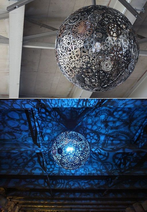 20. Chandeliers Made Out of Recycled Bike Parts: Artists Joe O’Connell and Blessing Hancock created 6 gorgeous chandeliers by recycling old bike parts, and used them to turn an underpass in San Antonio, Texas, into a public art space. (via deMilked)