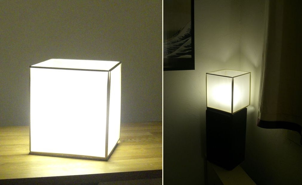 21. Shoji-Style Lamp: I’d been planning to build a floor lamp using bamboo for the pole, and a lampshade that was kind of inspired by shoji screens (I’m trying to get a Japanese-style decor going), I like that look of light through translucent paper. By the time I’d built the base and the pole, and then the lampshade, I realized the shade was too big and would have made the lamp look top-heavy. Instead I decided the shade would look good as a table lamp (I did something else for my floor lamp – see here). Since I made this I’ve found that it does look quite a bit like an actual and on! (Like a cross between this, this and this, say) (via atarax)