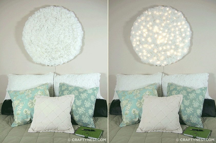 27. Coffee Filter Snowball Wall Light: Crafty Nest shares practical, inexpensive, and pretty DIY home decorating crafts and ideas. Many of the do-it-yourself projects include salvaged, green, or recycled materials. (via Crafty Nest)