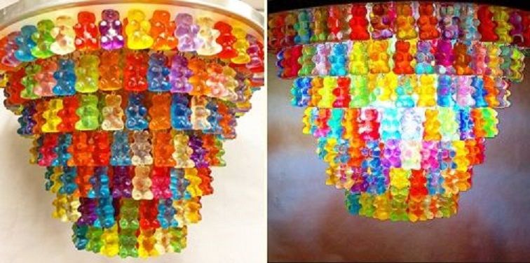 30. Tier Gummy Chandelier: The custom 7 tier Gummy Chandelier25″ diameter x 14″ tall1500+ hand cast gummy bears (via Kevin Champeny)