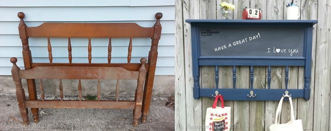18. Headboard Chalkboard Coat Rack: My Repurposed Life shows you how to make the repurposed headboard chalkboard coat rack. This handy and unique project will keep your busy family organized. (via My Repurposed Life)