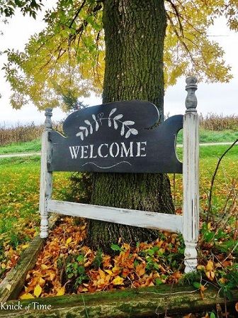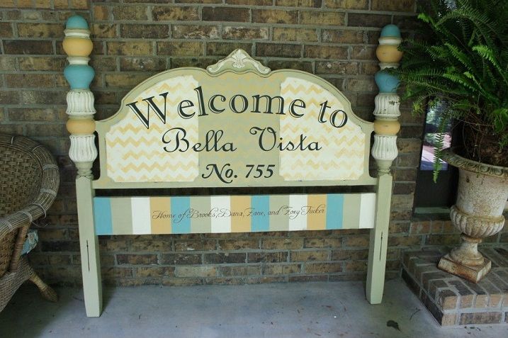 20. Repurposed Headboard Sign: We repurposed a vintage headboard into a sign for our front porch using Annie Sloan Chalk Paint. (via Bella Tucker)