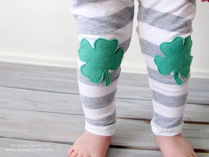 17. Easy Shamrock Leggings: This easy shamrock leggings tutorial is the perfect way to make a basic pair of leggings into something special for St Patrick’s day this year. (via Make It and Love It)