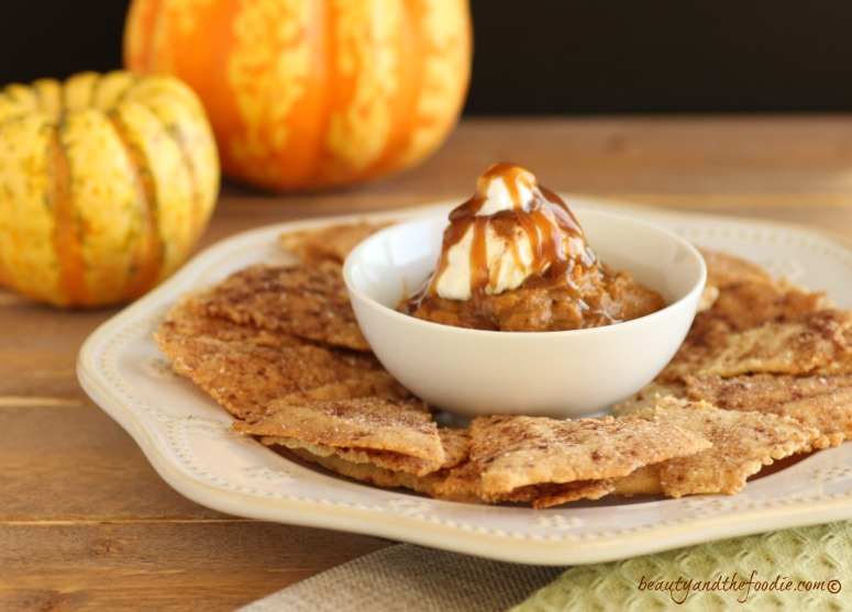 8. Paleo Pumpkin Pie Dessert Nachos: Paleo Pumpkin Pie Dessert Nachos are sweet cinnamon pie crust chips that are dipped into a creamy pumpkin pie dip with caramel sauce. (via Beauty and the Foodie)