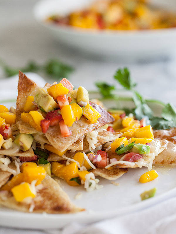 6 Dessert Nachos with Strawberry, Mango and Avocado Salsa