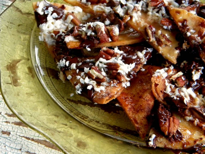 7. Grilled Dessert Nachos: Grilled dessert nachos are easy to make – the perfect dessert for casual summer entertaining. Gooey caramel, chocolate, and pecans? Yes please! (via Restless Chipotle)