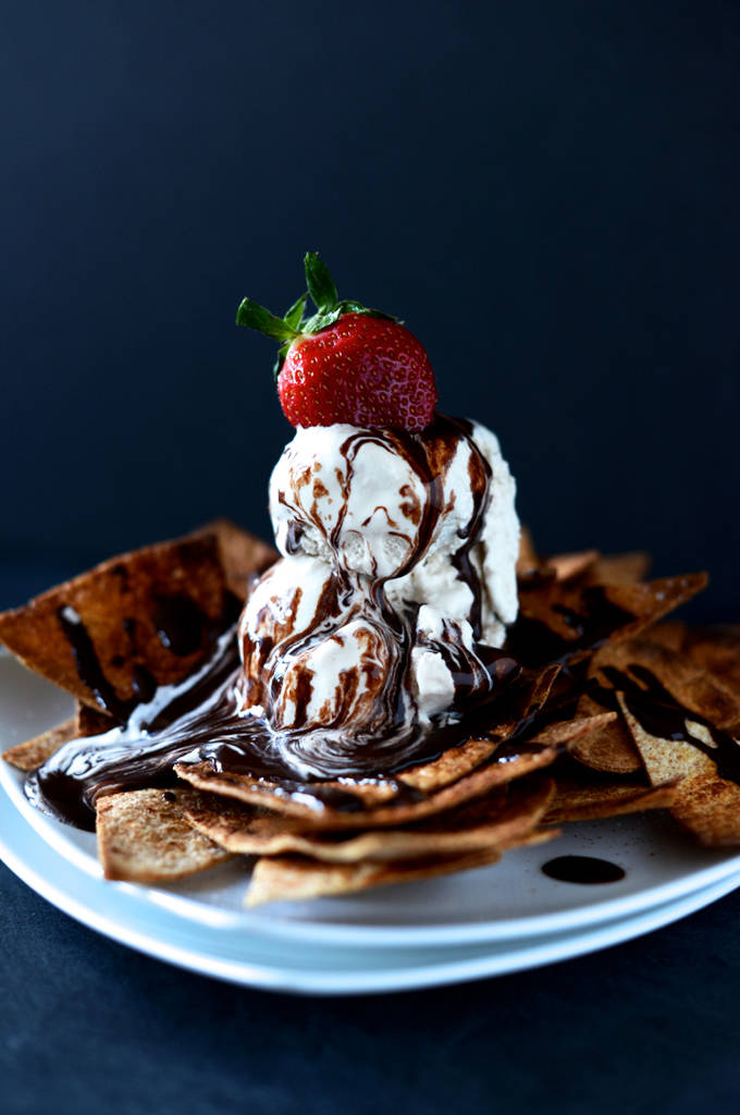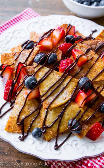13. Cinnamon Sugar Tortilla Nachos: A simple recipe for my favorite dessert nachos! Complete with homemade cinnamon sugar chips, whipped cream, and caramel sauce! (via Sally’s Baking Addiction)