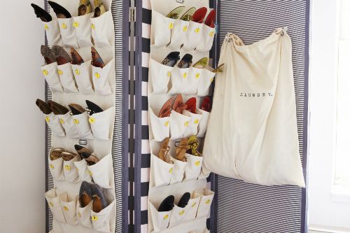 22. shoe organizers on a room divider or screen: Apparently, the “average” woman in the U.S. owns 17 pairs of shoes. I won’t tell you where I rank but it’s a big enough number that it has inspired me to create clever shoe storage solutions for the “above-average” woman. (via Huffingtonpost)
