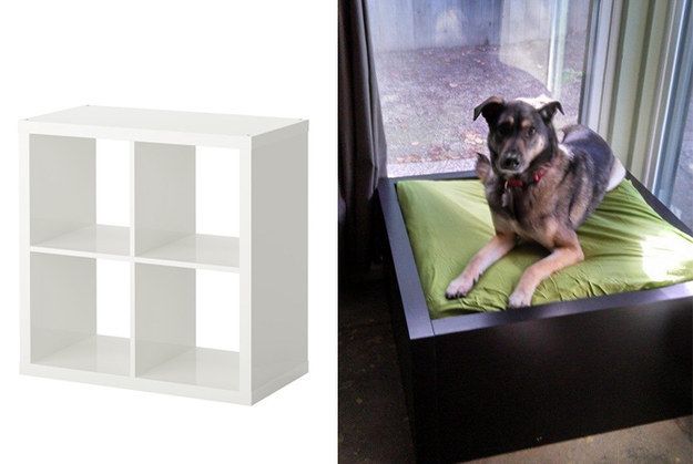 3. Modern Dog Bed: Materials: Dvala fitted sheet, Kallax Shelving unit, Sultan Lade slatted bed base, Vyssa Slummer Mattress for small bed After an exhausting search for a modern dog bed that was reasonably priced, I decided to see if anything at Ikea would meet my need. I was so please at how easy it was to do (under (via IKEA Hackers)