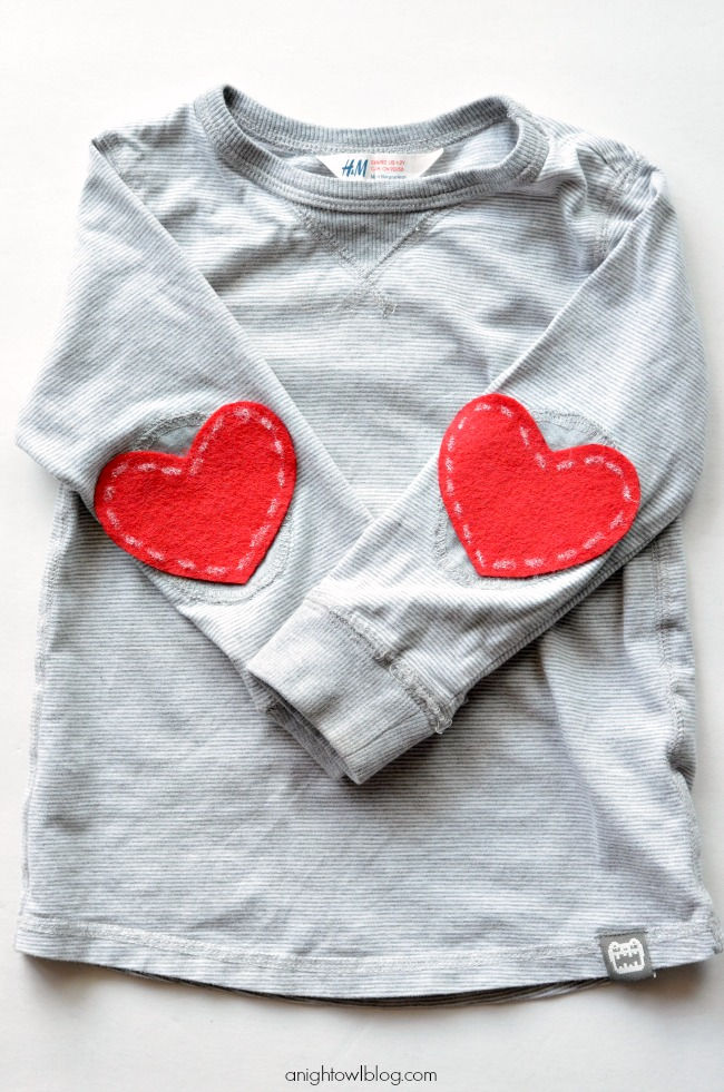 26. No-Sew Heart Elbow Patches: Looking for an easy Valentine’s Day DIY? Check out our No-Sew Heart Elbow Patches – perfect for your Valentine’s Day wardrobe! (via A Night Owl)