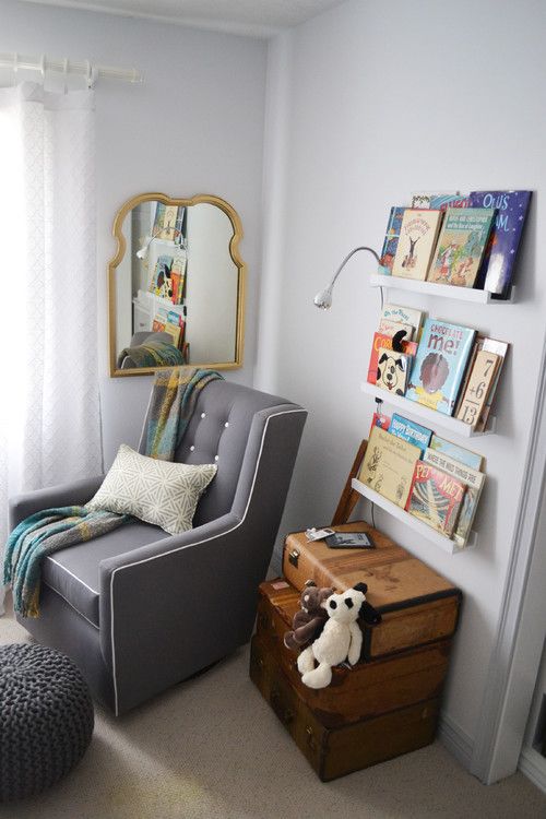 1. Hang picture-book shelves and stack suitcases as storage: Keep your wee one’s stuff under control and your nerves unfrazzled with these space-saving storage and baby-gear ideas (via Houzz)